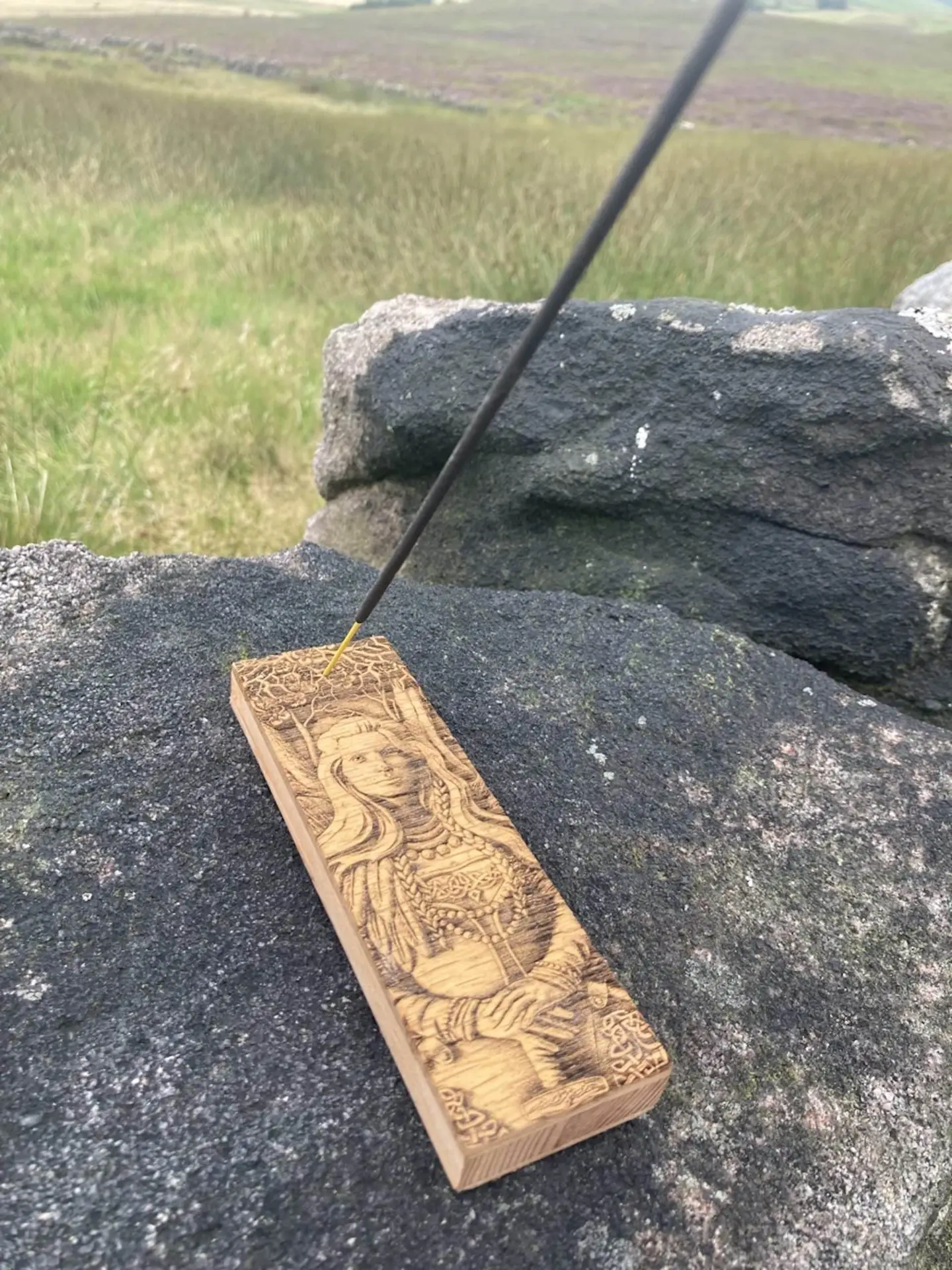 Freya Viking Incense Holder โ€“ Honour the Goddess. Invoke the power of Freya, the Norse goddess of love, beauty, and magic, with this beautifully laser-engraved wooden incense holder. Perfect for creating a serene atmosphere while embracing Viking heritage.