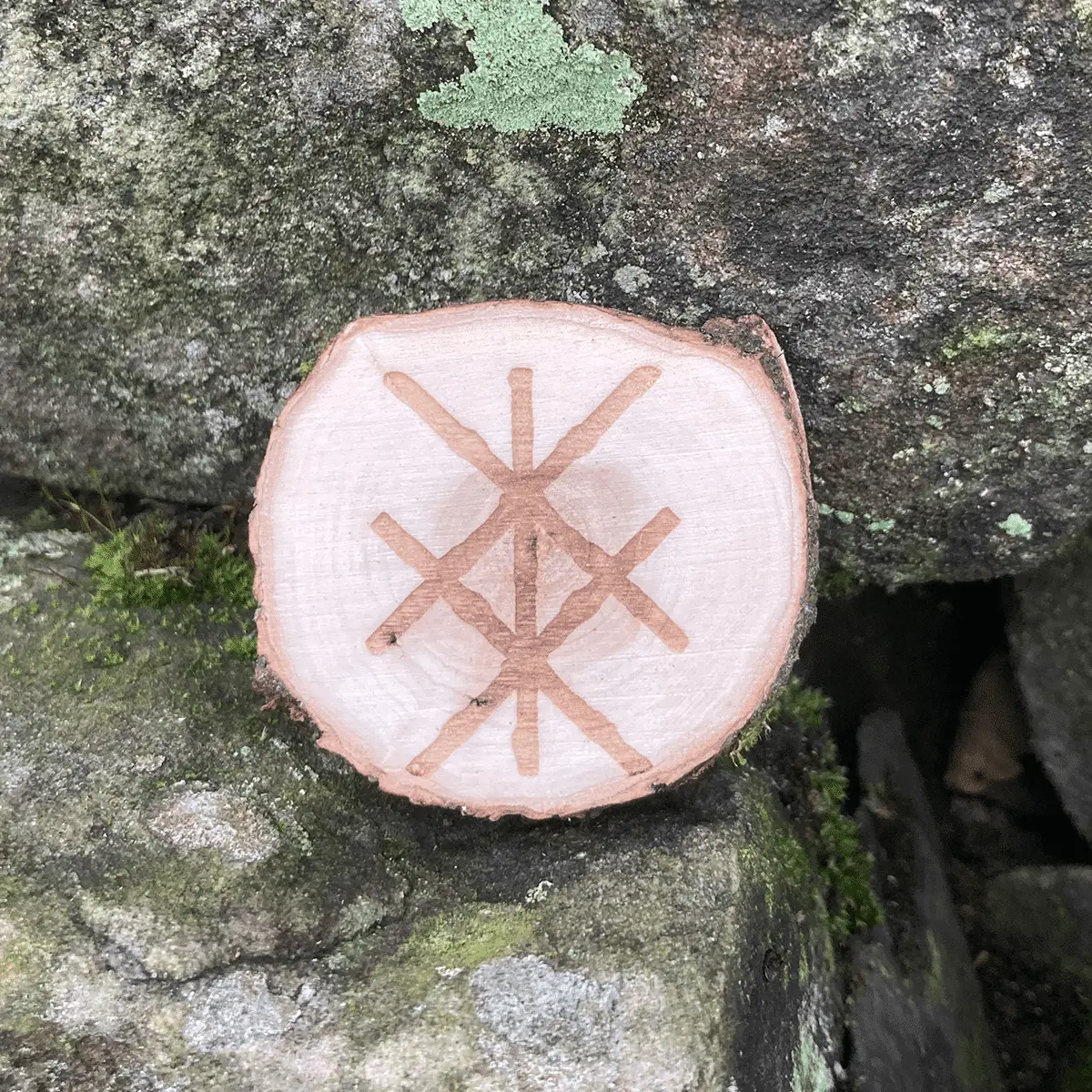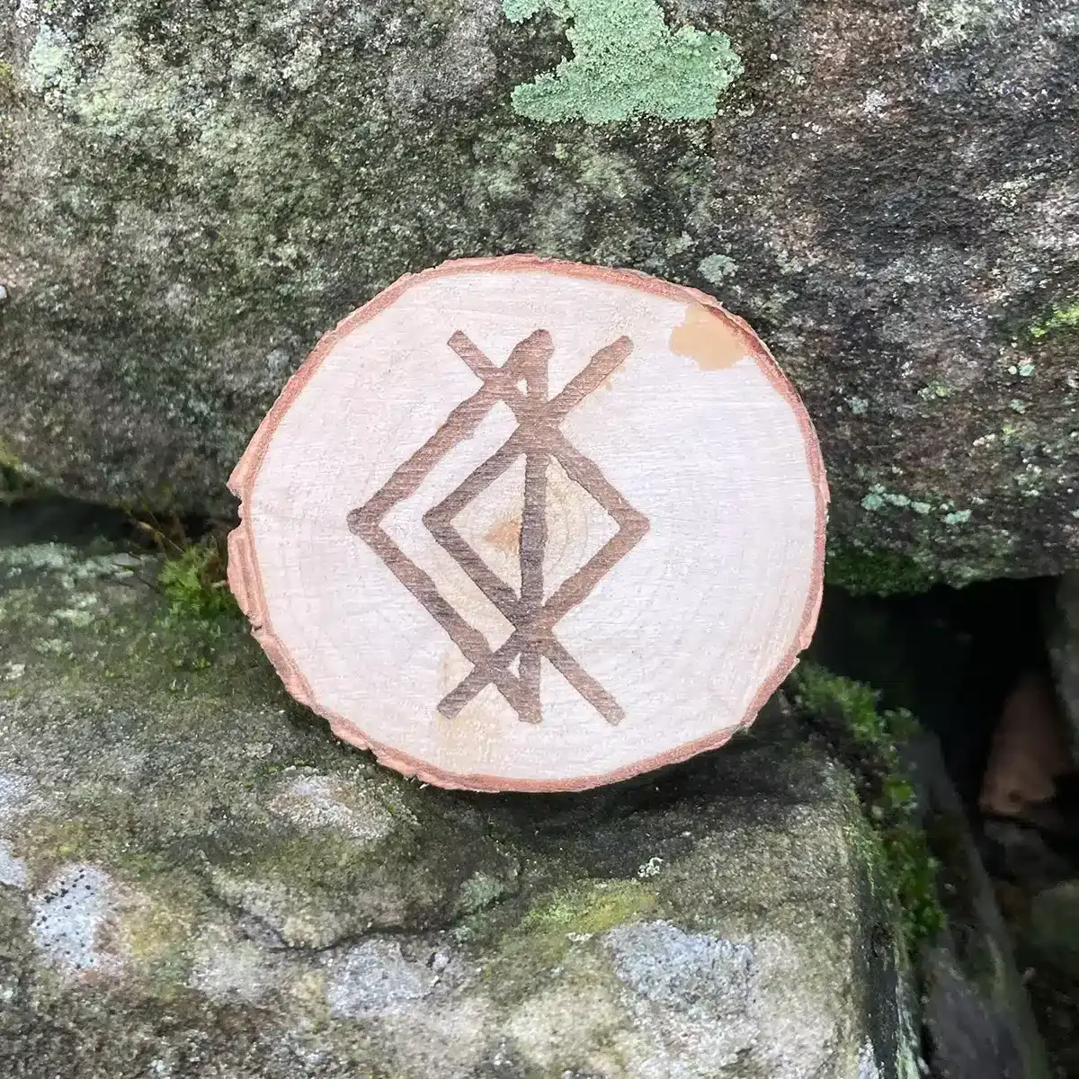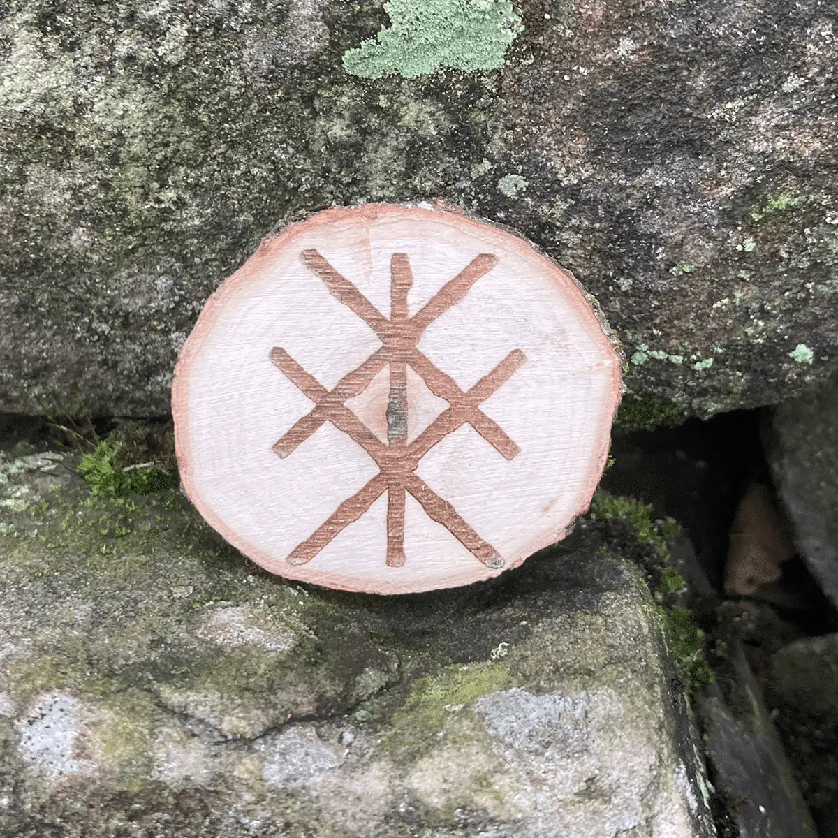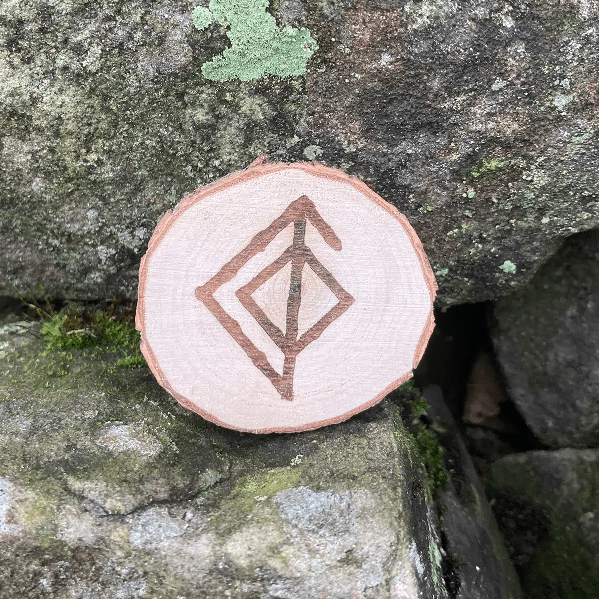 Love Rune Wooden Token, a range ofย Love Rune Designs laser engraved on plywood.