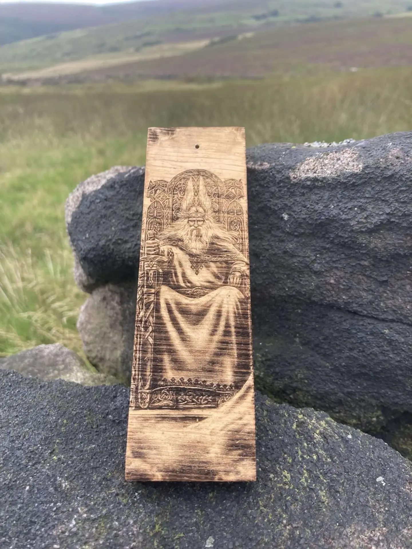 Honour the Allfather with this intricately engraved wooden incense holder, featuring a striking Norse design of Odin himself. This piece is perfect for adding a touch of Viking spirit to your home while burning your favourite incense.