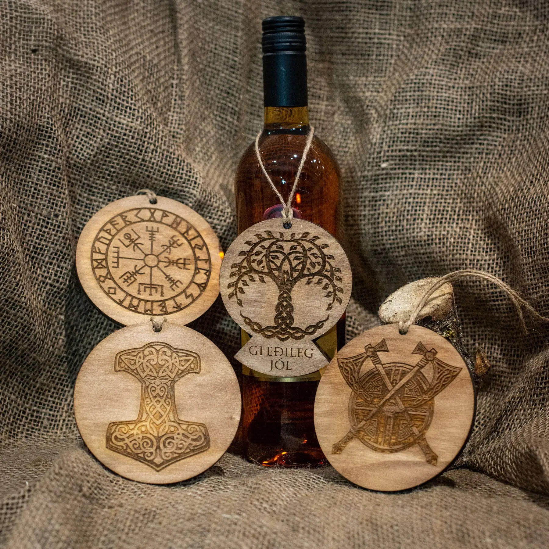 Set of Viking Hanging Decorations, Hand made Viking Decorations. Can be used as a Christmas Tree decoration, a wall hanging or gift tag.