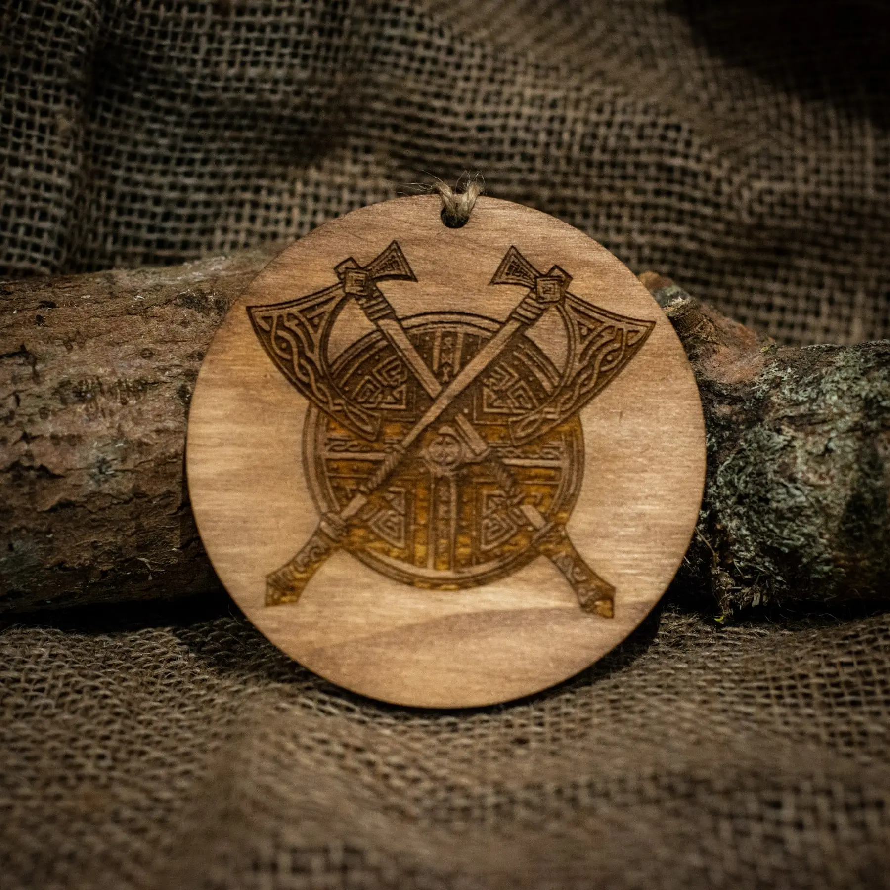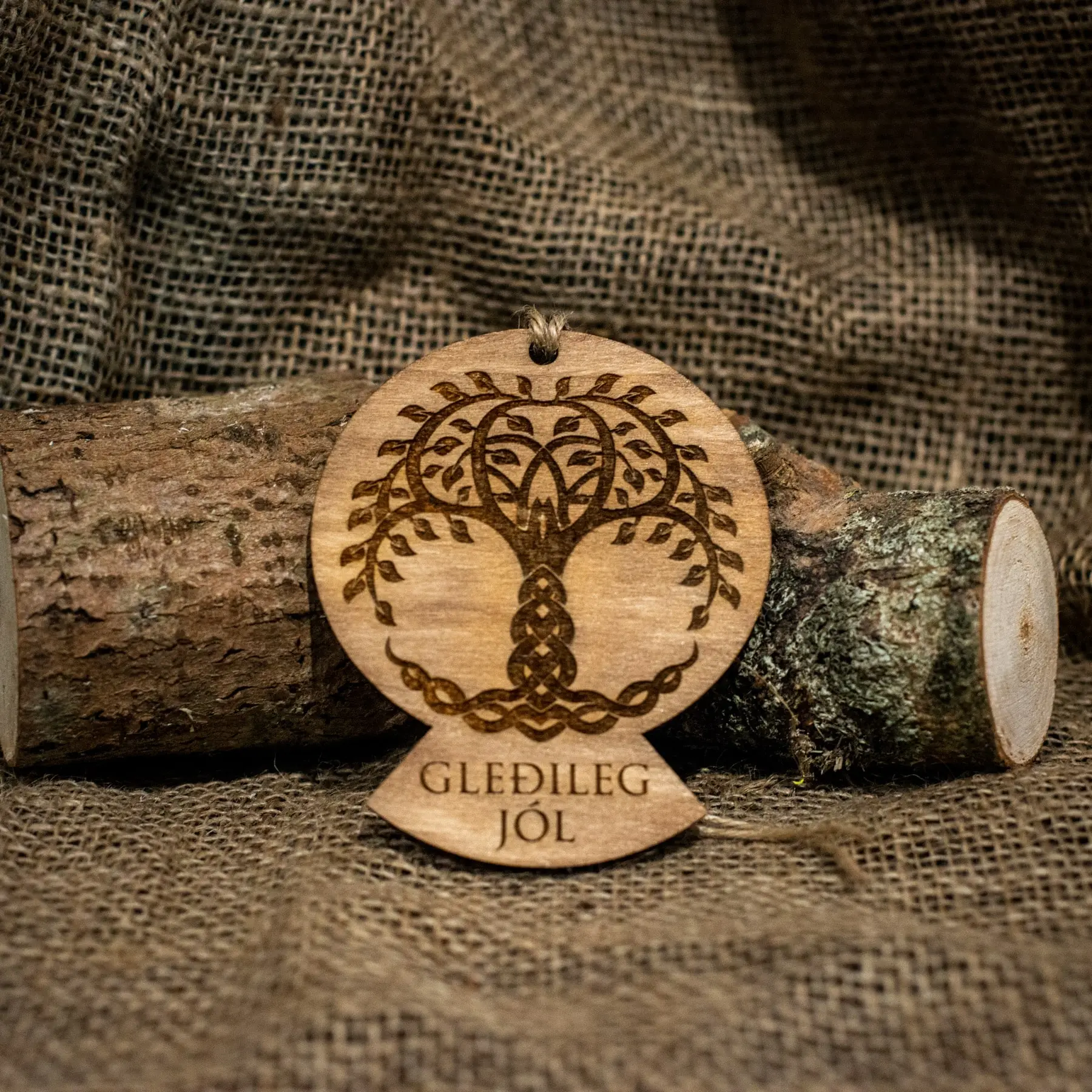 Available in 4 designs;ย Mjolnir (Thor’s Hammer), Shield & Axes, Vegvisir (Viking Compass), Yggdrasil (Tree of Life) engraved with Gledileg Jol (Happy Christmas).
